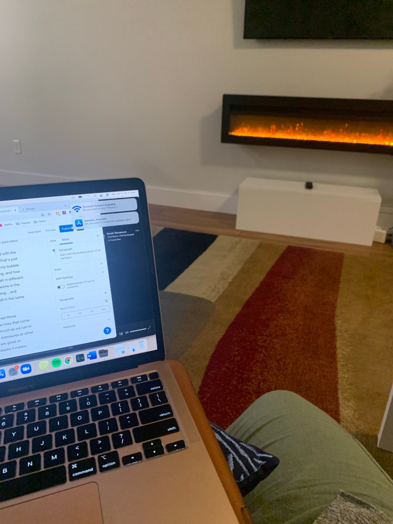 But anyway, after dinner we went through the mostly painless process of checking into our Air Bnb and settled in for a cozy night. Nick fell asleep early. I worked on some writing and content stuff, drank tea, tried a chocolate and did a little stretching, before making my own way to bed.