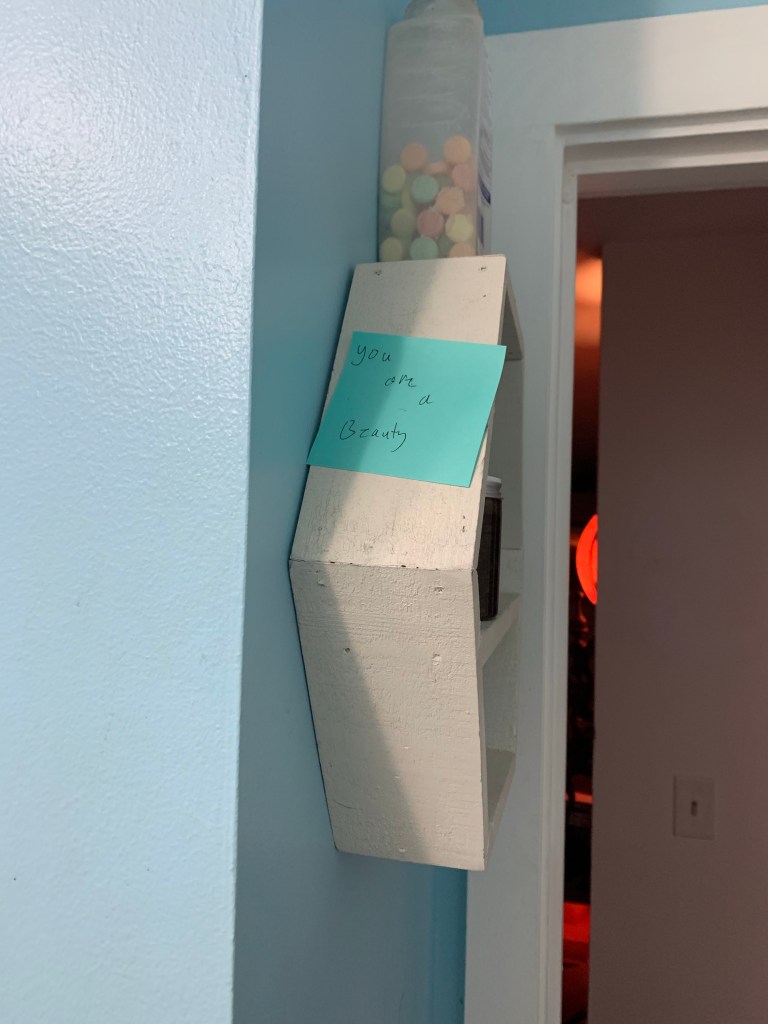 The cute sticky notes he left help. I’ve found 3 so far, and a chocolate bunny for Easter. I might be the luckiest girl in the world.
